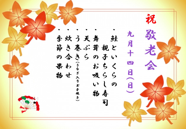 皆様の健康とご長寿のお祝いとして、敬老会を開催いたしました。