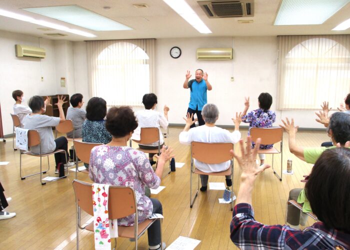 また地域になぞった替え歌で「いい湯だな」と「幸せなら手をたたこう」を動作付きで歌いました。