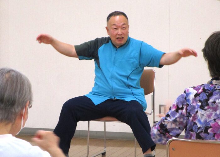 歌体操「あめふり」を合唱しながら、歌詞に合わせた振り付けで体操し、