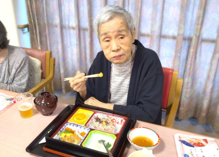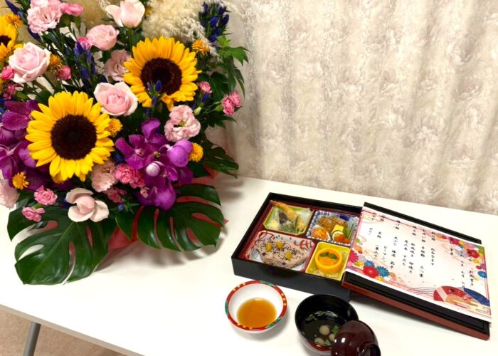 敬老の日、ご家族をお招きして敬老祝賀会を行い、ご長寿の皆様をお祝いしました。