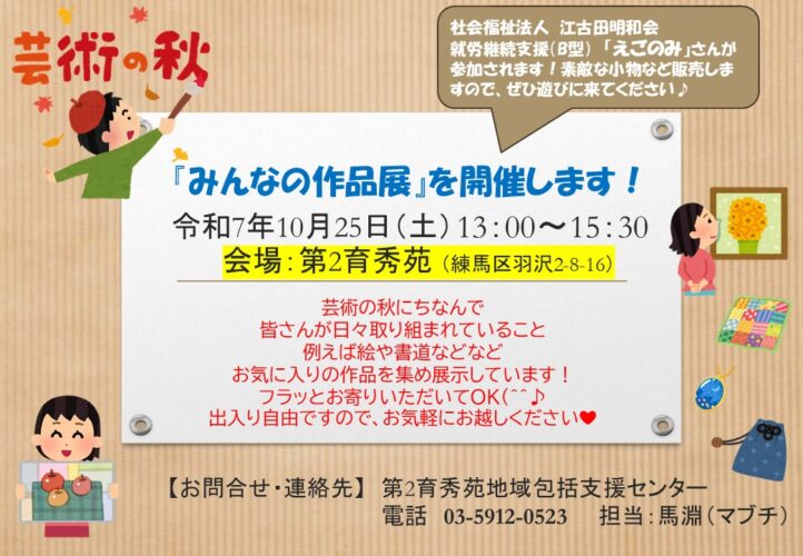 次回は『秋の作品展』で使用する展示物(折り紙作品)を作る予定です。