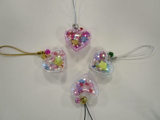 ハート型や星型などのカプセルにビーズ等のパーツを封入します。