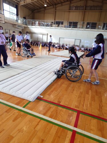 車椅子体験や高齢者疑似体験を実施。学生の皆さんが熱心に取り組む姿が印象的でした。