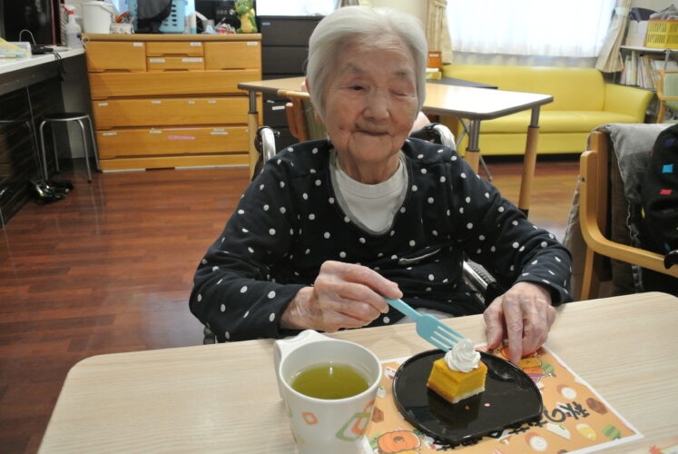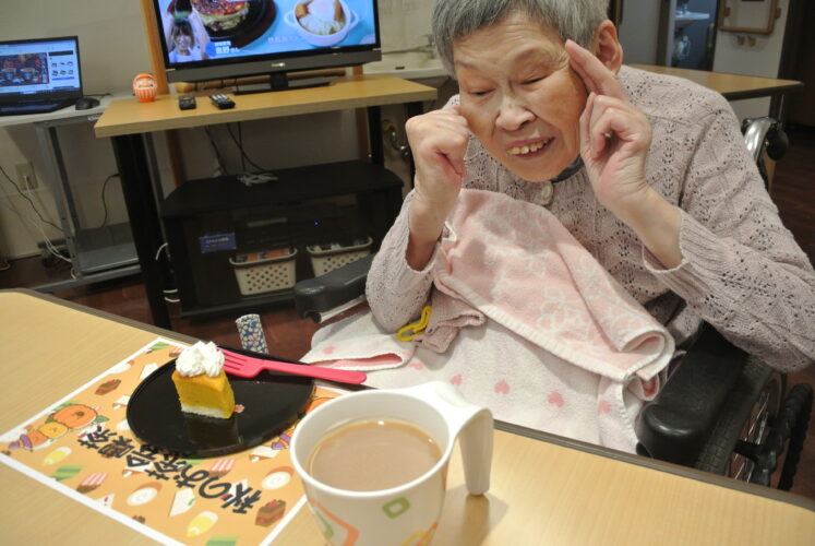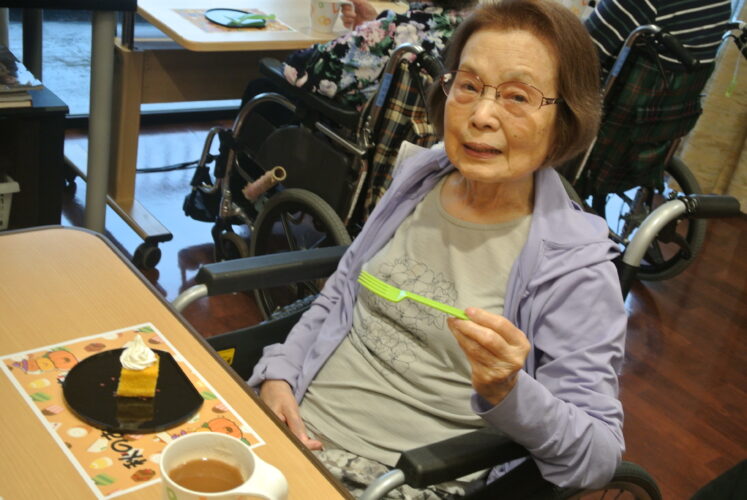 2025.11.05 第3育秀苑 特養 秋のお茶会喫茶🎃 10月26日に秋のお茶会喫茶として、がぼちゃチーズケーキを提供いたしました。 「あら、今日はいい事でもあったの?」 と、普段よりちょっと豪華なお茶菓子に 皆さまニッコリ☺ おやつ時間に秋のスイーツを召し上がっていただきました♪