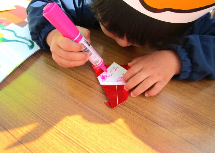 皆さん上手にサンタクロースを折って、描くお顔も表情豊かでした♪