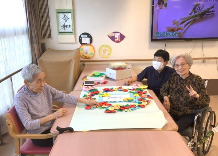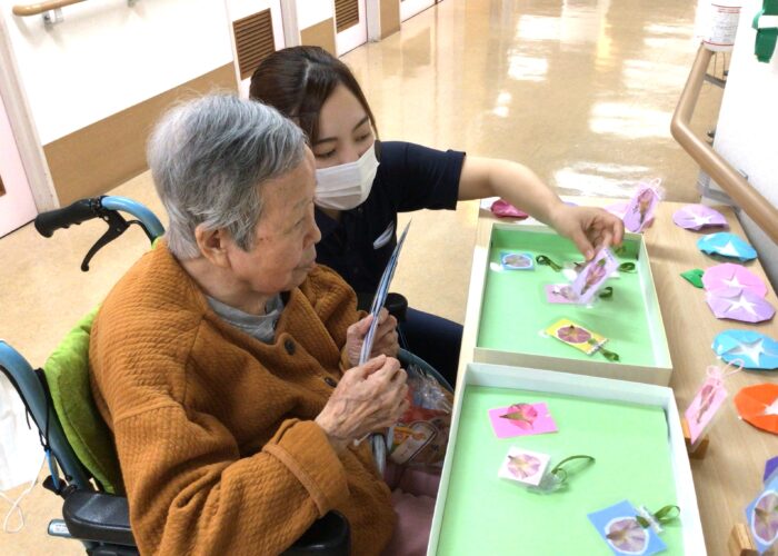 2025.12.02 第2育秀苑特養 作品展 1階フロアで行った作品展です。 季節や行事に合わせて利用者様が作った壁紙を1年分壁いっぱいに飾り、 作品作りをしている当時の様子の写真も一緒に展示して皆さんで1年を振り返りました。 記念品は夏に利用者様が育てた朝顔を押し花にして作った栞です。 ⇒ インスタグラム