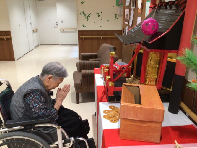 3階フロアでは毎年、育秀苑神社を作り皆さまにお参りしていただいています。