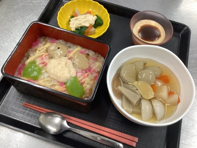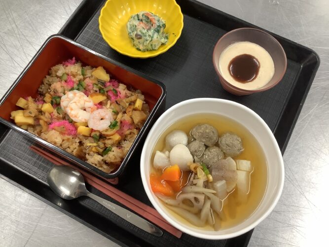 お出ししました。きなこの香が広がり、「全部美味しいね」と笑顔で食事を楽しまれていました。