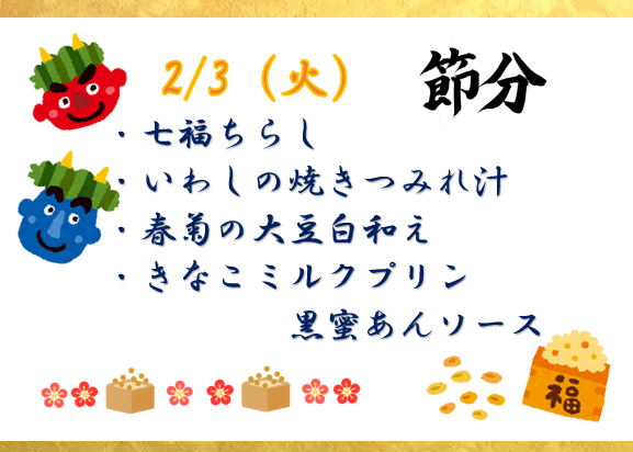 皆様に福が訪れますよう、節分にちなんだ行事食をご用意しました。