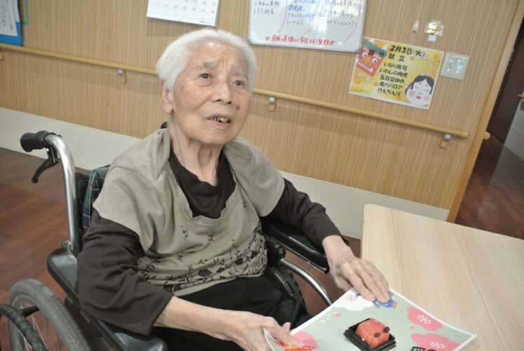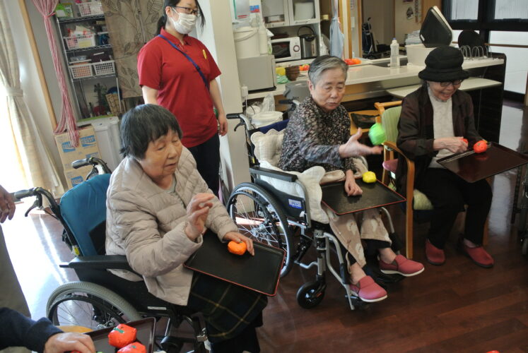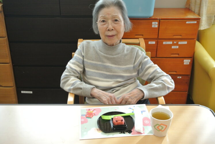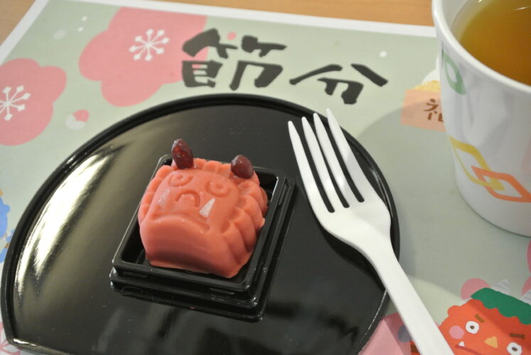 2026.02.28 豆まき~♪ 4階フロアにて豆まきを行いました。鬼の顔をあしらったカゴに目掛け「鬼は~外!!」「福は~内!!」とボールを投げました。鬼退治が終わった後は、鬼の練り切りを食べて鬼退治!