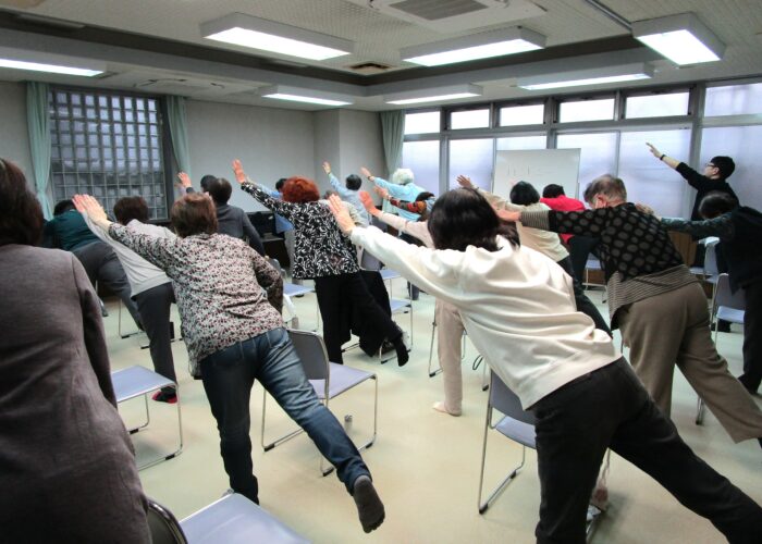 講師の方がとても楽しい雰囲気で体操が行われています。